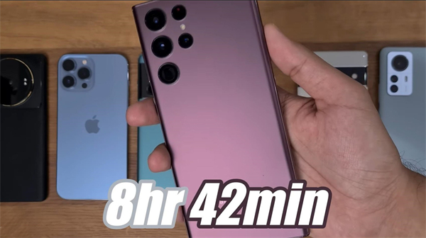 三星S22Ultra的续航时间为8小时42分钟,排名第四。