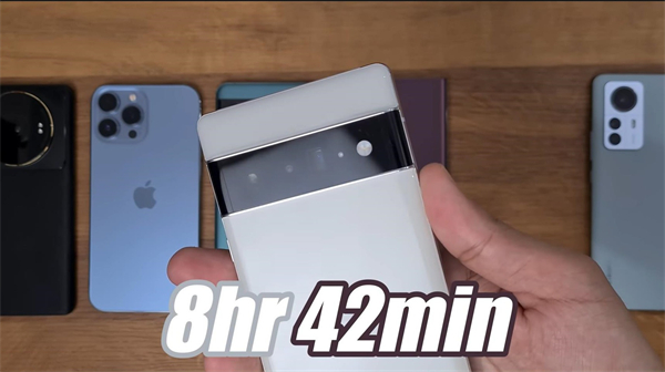 谷歌Pixel6Pro续航时间为8小时42分钟,排名第五。