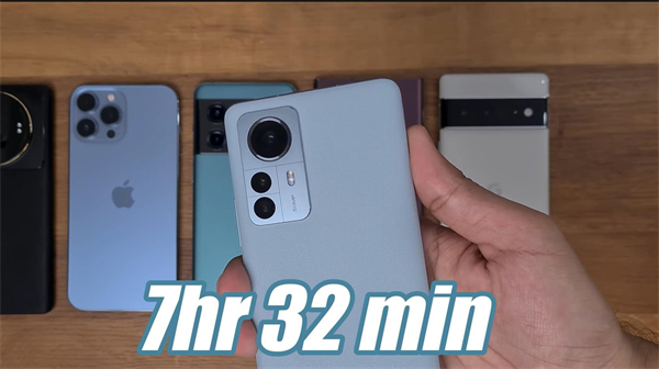 小米12Pro续航时间为7小时32分钟,排名第六。