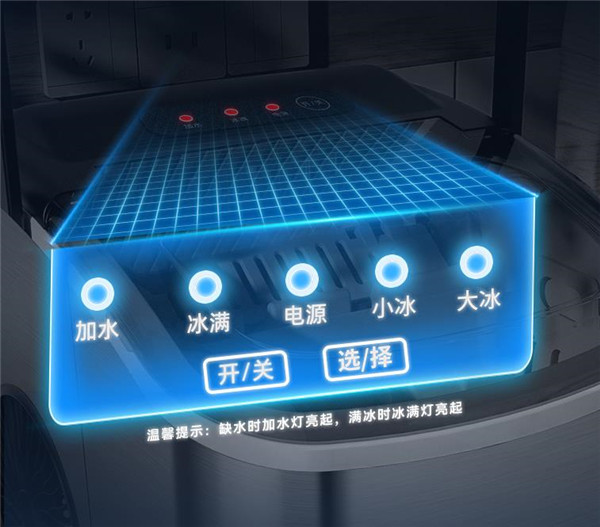 惠康制冰机使用方法很简单,就是通电、加水、开机,然后选择大冰还是小冰。