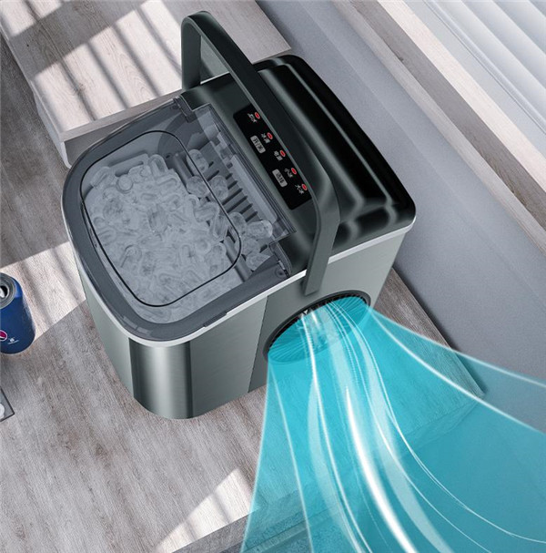 惠康制冰机机器两侧有风扇,运作的时候还是有一定的噪音的,放在桌子底下制冰,基本就不会影响周围办公。