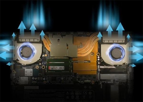 要想游戏玩的好,散热供电少不了,战神T8-DA9NT采用双风扇五铜管,CPU与显卡分体式散热设计,其加粗型铜管再配以高密度扇叶涡轮风扇,让你在高强度激烈战斗时也能不卡不顿,走帧连贯,可谓是身轻如燕!同时任务栏右键的控制中心可以调控14种键盘灯光颜色,自定义风扇曲线与性能模式,Fn+1一键强冷,强力散热一秒还你冰凉劲爽。