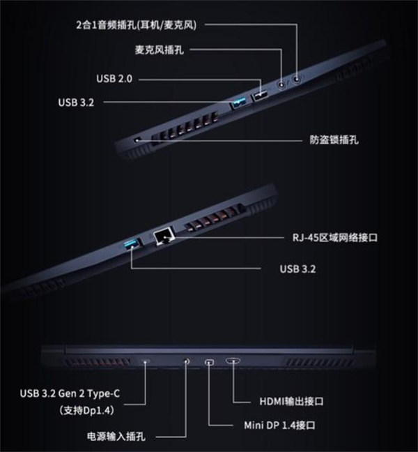 游戏时总是避免不了要进行联机或是分屏拓展,战神T8-DA9NT在外部设备接驳能力上同样给力,拥有耳机麦克二合一端口、USB3.2 Gen2、USB2.0端口、RJ-45网络连接端口、Mini DP 1.4接口、HDMI端口等繁多端口,让连接更加随心所欲。