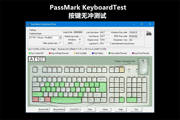 通过PassMark KeyboardTest软件进行按键无冲测试,发现有线或无线模式下均可以实现全键无冲的效果。经过一番打字测试体验,个人觉得有线和2.4G无线模式下,延迟表现更好一些,比较适合游戏,蓝牙模式下,延迟稍逊色,不过办公打字什么的还是挺好的,功耗更低,续航也更好一些。
