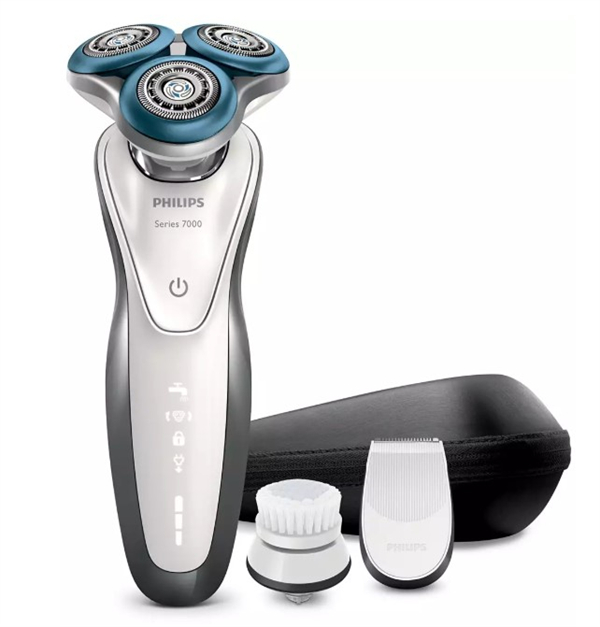 飞利浦这款电动剃须刀,蓝白的机身设计非常的有“理工”的感觉!三个头运转工作,剃须、洁面、鬓角修剪,并且还配有剃须刀收纳袋。送男生剃须刀绝对是最实用的了,电动的剃须刀操作非常方便,也避免了一不小心就会误伤自己。