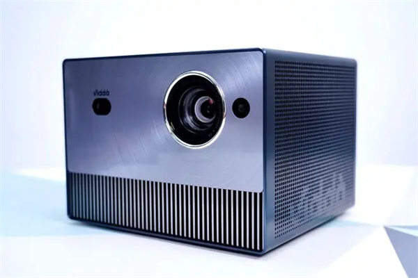 Vidda C1机身被拉丝工艺的铝合金所包裹,似乎三色激光光源的发热量较大,机身散热开孔区域不小。前面板围绕镜头设计有环状拉丝纹理,好像夜空中的星轨。