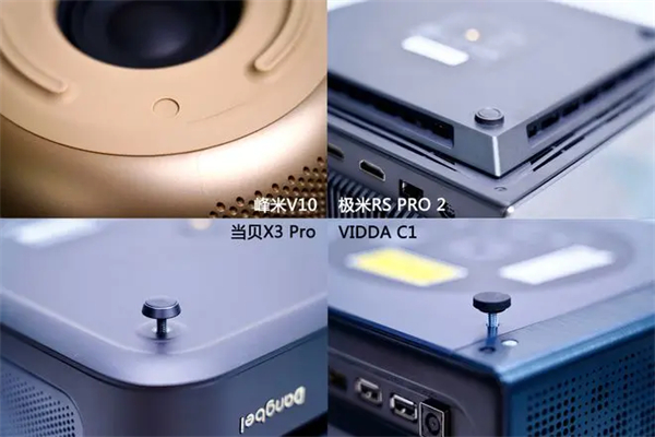 音质相关:峰米V10为2 x 7.5W + 15W低音炮的2.1组合,猜测音质表现会略胜一筹,观影更具沉浸感。而其它3款均是2 x 10W的规格,中规中矩。