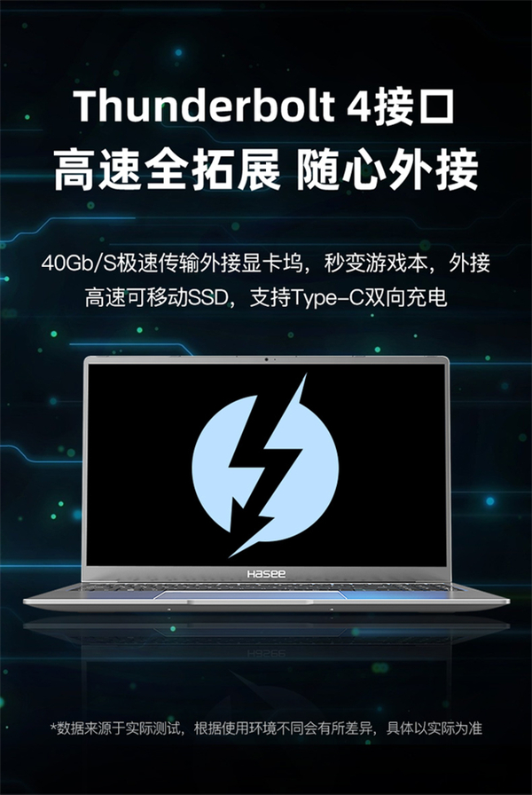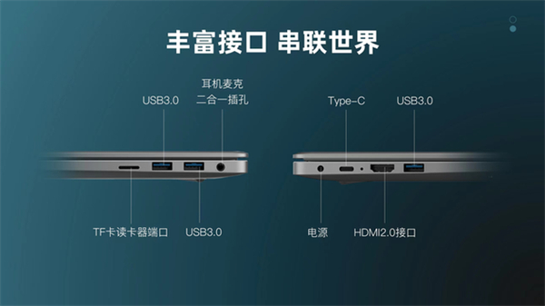 机身配置了丰富的接口,1 个 TF 卡读卡器端口、1 个 HDMI 2.0 端口、3 个USB 3 .1Gen1 、一个Type-C 接口,支持Type-C双向充电。优雅 X5-2021S7的全功能Type-c接口通过了雷电4认证,拥有40Gb/S的传输带宽速率,无论是外接显示器还是外接显卡坞都能获得不错的性能扩展能力,让大屏轻薄本摇身一变成为高性能游戏本。