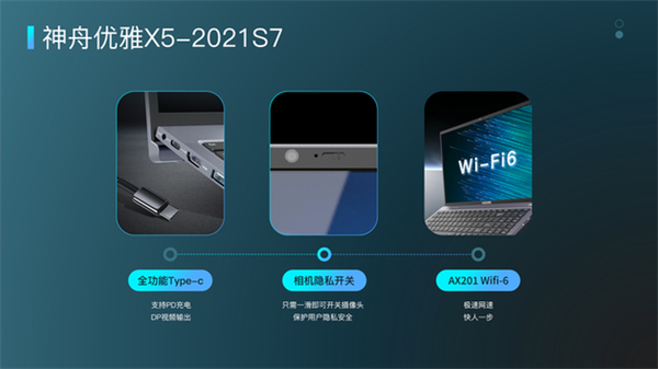 ️总结:这款神舟优雅X5-2021S7在外观上依旧是优雅的风格设计,配置与续航上又能够满足用户日常繁杂的工作需求,并且还有贴心的隐私保护设计,在诸多配置的加持下,塑造的正是商务办公的新体验。