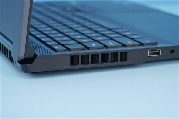 机身左侧有散热出风口、1个USB 2.0接口和一个3.5mm耳麦合一接口。