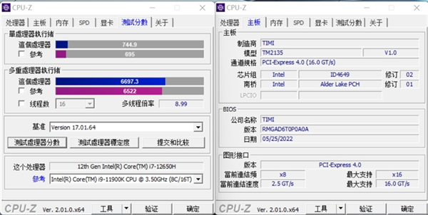 i7-12650H的单线程分数744.多线程分数6697.