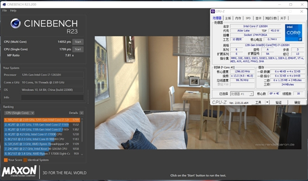 i7-12650H单线程分数1799cb,多线程分数14052cb。