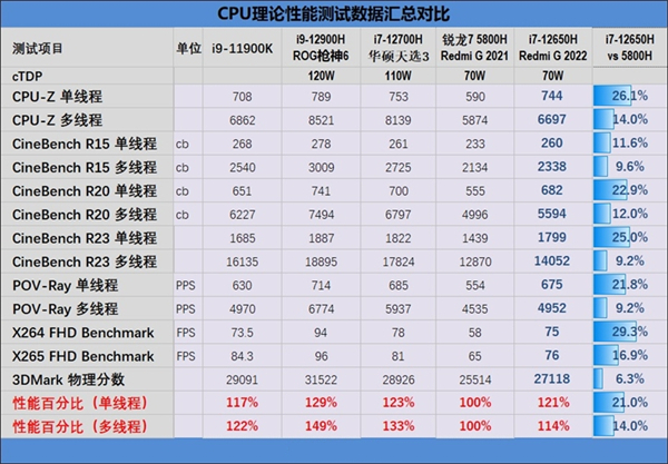 ️二、性能测试:单核性能接近110W满血i7-12700H