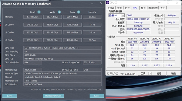 2个SO-DIMM DDR5插槽上,各插了一根三星8GB DDR5 4800MHz内存,