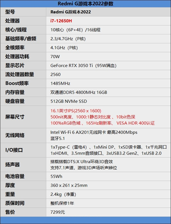 ️Redmi G游戏本2022详细参数配置如下: