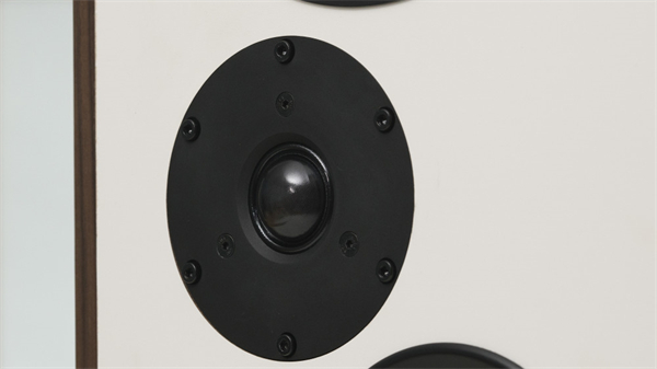 Mission美声700的外观非常的简约,白色面板+胡桃木贴皮,再现了旧版美声700的经典外观,甚至连单元错位设计都保留一致,除了倒相孔稍大和低音单元振膜改为白色之外几无差别。这种外观可以说是具有非常鲜明特色的英国音箱设计, spendor、harbeth等品牌均可见到。