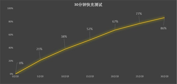 实际体验下来,5000mAh电池还是非常耐用的,场景智能优化立大功,系统会智能优化长时间不用的后台应用重度使用一天后还能省30%电量。80W快充虽然达不到目前市面上顶配,但肯定是完全够用。经过实测,10分钟就可以充入38%,30分钟可充86%。