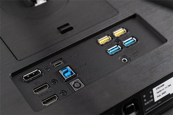 接口方面,飞利浦27E1N8900拥有2个HDMI2.0接口、1个DP1.4接口、1个Type-C接口、4个USB接口(其中两个黄色的USB接口支持快速充电)和1个3.5mm音频接口,方便玩家驳接多个输入源。其中Type-C接口为全功能Type-C接口,除了支持视频和数据传输外,还支持PD充电,也能为4个USB接口提供上行数据传输功能,从而在笔记本、电脑和移动设备等之间实现KVM切换,带来更方便的使用体验。