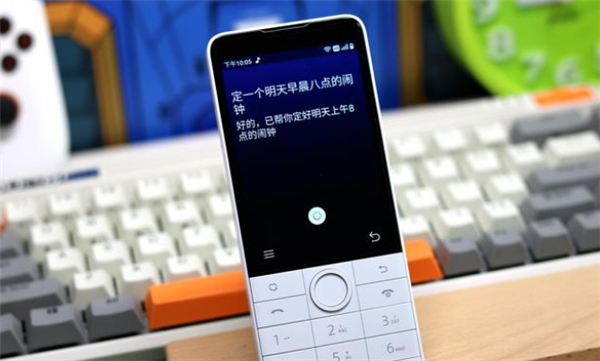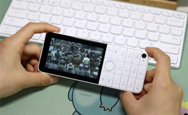 按键键盘部分取消了之前的空隙,采用一体化的布局,和手指的接触面积更大一些。除了标准的数字/字母按键之外,中间的导航键采用的是圆环凸出设计,用起来也比较顺手。在机身右下角#字键旁边有一个200W像素的前置摄像头,日常可以用来视频通话、刷脸等操作。