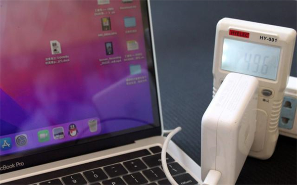 先来看看苹果Macbook Pro笔记本自带充电器的充电表现,可以看到自带的充电器给笔记本充电时的功率为49.6W,充电速度很可以了,接下来看看 ORICO 100W闪充线对苹果笔记本的充电表现。