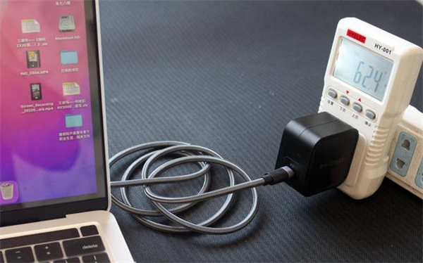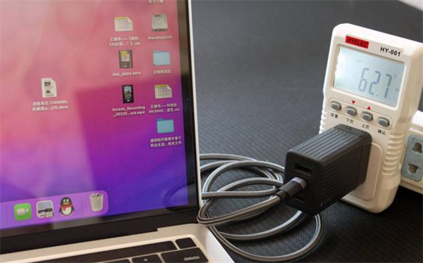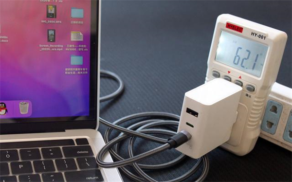 ORICO 100W闪充线在使用时特别简单,直接把线材插入电脑和充电器上就可以使用了。可以看到使用这条闪充线给笔记本充电时,充电功率达到了62.7W,比原装的苹果充电器提升了很多,这充电速度一下子就提上来了,让充电更快。