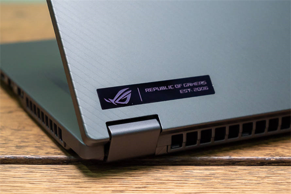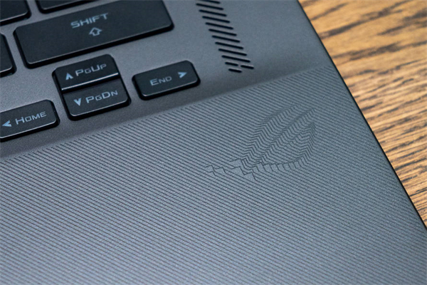 在设计上,ROG幻16的A面采用全金属材质,并且有一道道的斜纹,官方称之为引力波设计。A面摸起来手感十分地细腻,整体黑色也给人一种更加沉稳的气质。当然,A面的铭牌依然保留,看起来十分精致。