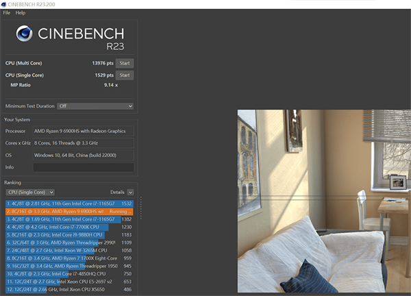 在CINEBENCH R23的测试中,测试单核得分为1529分,多核得分为13976分。