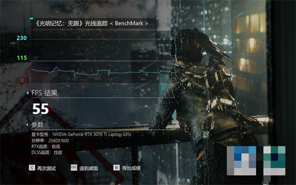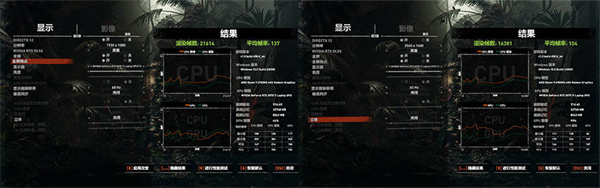 在游戏测试中,ROG幻16运行《古墓丽影:暗影》基准测试,在1920×1080分辨率下,打开最高特效可以得到132fps的平均帧率,而在2K分辨率下,平均帧率也达到了104fps,游戏表现十分流畅。《光明记忆:无限》光线追踪的测试中,选择2K分辨率,极高RTX品质以及性能DLSS品质,得到了55fps的成绩。