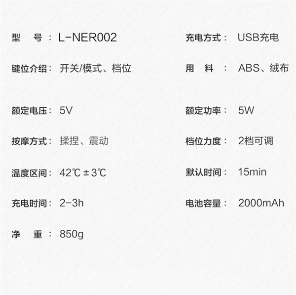 一次按摩15分钟,最大续航120分钟。