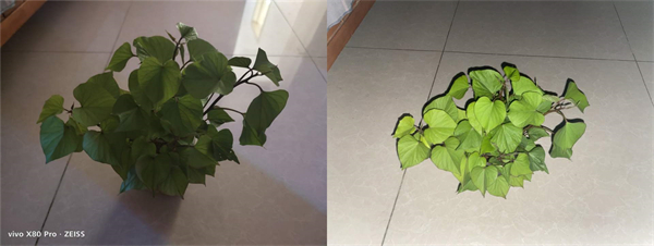 (左:vivo X80 Pro实际成像;右:其他手机)
