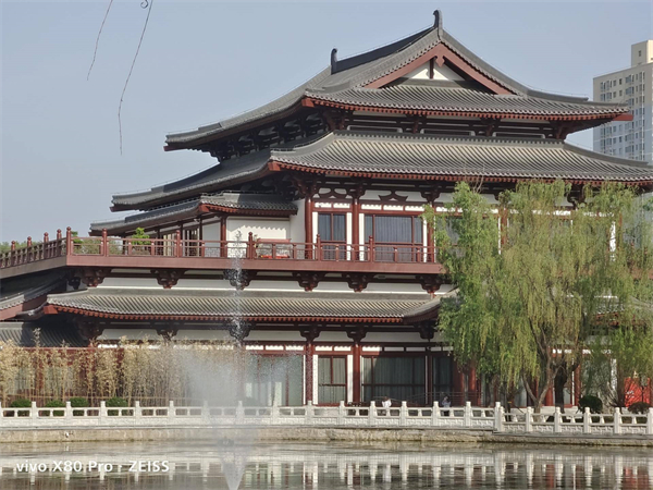 上图中笔者分别选用了0.6X、1X、2X、5X等不同倍率镜头拍摄,不难发觉,0.6X镜头下,vivo X80 Pro对于整体画面的把控还是比较精准,虽然采用大画幅形式包裹整个场景,但画面边缘的畸变现象并不明显,唯一的不足大概就是整体清晰度稍微有点低;1X、2X和5X镜头下,vivo X80 Pro的画面观感清晰自然,尤其是5X镜头,个人没有想到vivo X80 Pro的成像性能还是那般出色,仔细观察的话,池塘中喷泉喷出的水花都被清晰记录了下来,可见vivo X80 Pro深厚的影像功底。