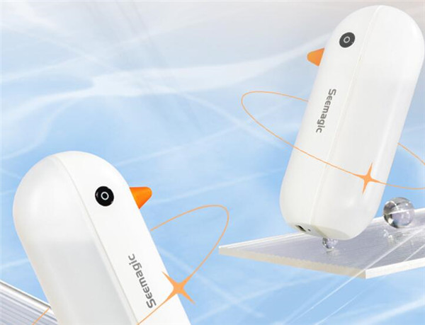 Seemagic便携免洗泡沫洗手机外观设计充满童真童趣,长得像一只可爱的小企鹅。小眼睛设计为触摸按键,小嘴巴是洗手机的出泡口。