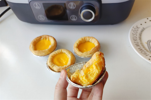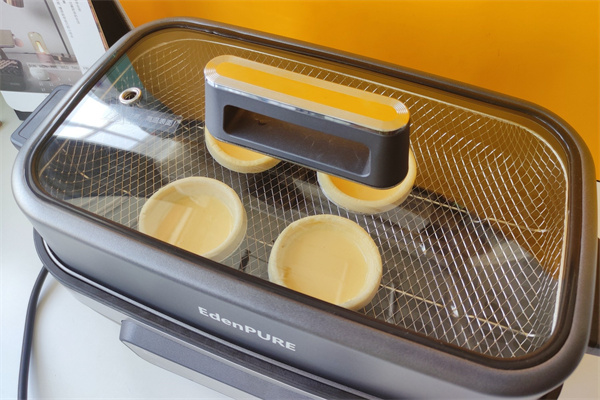 放入宜盾普多功能料理锅中,可视化上盖的设计真方便,可以时刻观察蛋挞表面情况。待蛋挞表面焦糖斑明显,柔软嫩滑的蛋挞就做好啦,简单又好吃。