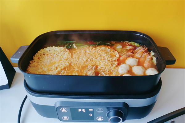 宜盾普多功能料理锅采用优质的陶瓷油不粘锅涂层,煮面吃火锅完全不粘,特别方便。