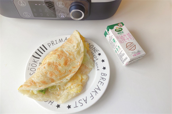现在用宜盾普多功能料理锅做早餐,又简单又快速,几分钟就搞定,真是打开了我新世界的大门。鸡蛋灌饼在加一盒牛奶