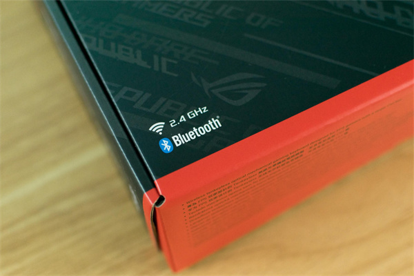 盒子的左下角,有2.4GHz和Bluetooth的标记,代表支持2.4GHz无线通讯连接和蓝牙通讯连接,加上有线连接,是款三模键盘,多种方式连接,更加灵活。
