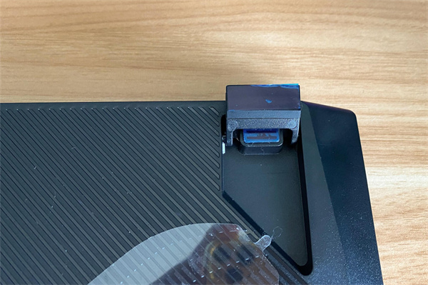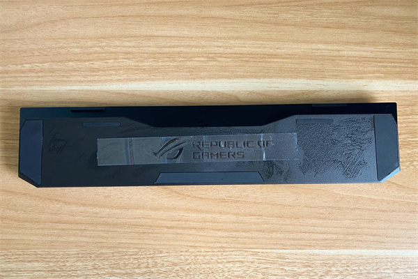 腕托是很多人喜欢的,我们看背面有5个橡胶垫,可以保证腕托的稳定性,底部也有ROG的标记。