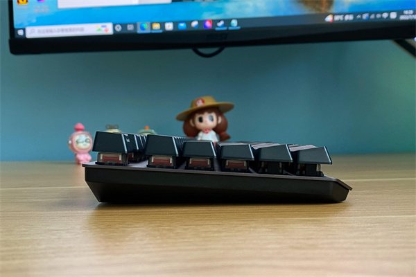 从侧面看,这款键盘呈现一定的弧度,符合人体工学,可以让击打的时候更加舒适。