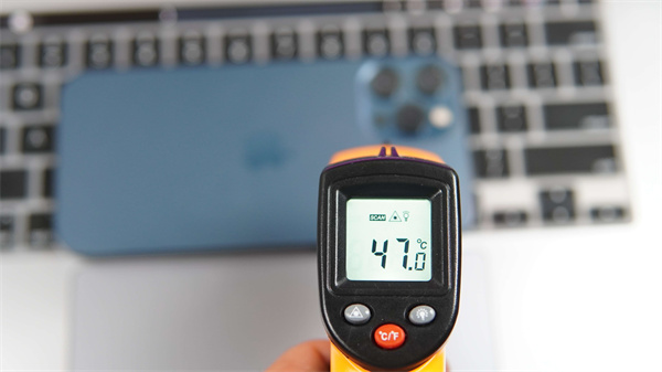 手机背面和屏幕都有微烫的感觉,这时候测试的温度在43°C到48°C之间。