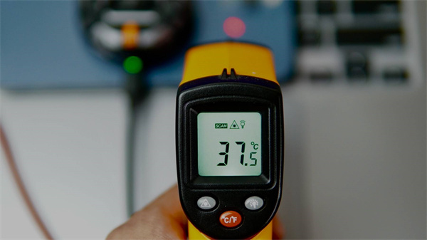 在不进行游戏的情况下,让散热器空转,正面因为工作散热,温度有42°C左右,而背面的散热区域竟然只有11°C。