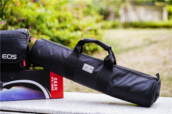 鑫悦PX-428C碳纤维三脚架是一款无中轴的三脚架,三脚架搭配了收纳袋,轻度防水,耐磨,可手提,可上肩,整体感觉还是不错的,而且收纳袋内部还有口袋可带上一些配件,因为有隔离,所以不会划伤三脚架自身。