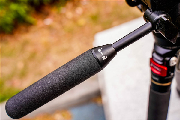 把手的固定采用金属锯齿结构,只要旋紧之后把手就可以非常牢固地固定,把手也可以伸长,伸长之后调节云台会更加顺手。