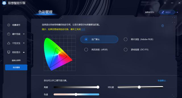 联想YOGA Air 14s还提供了不同色域标准可供用户随时切换。