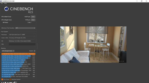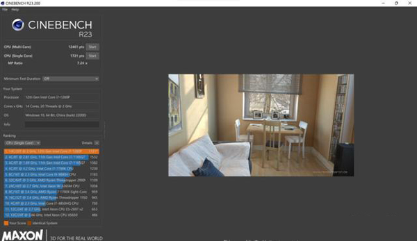 ↑不插电,Cinebench R23多核12461分,单核1721分
