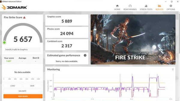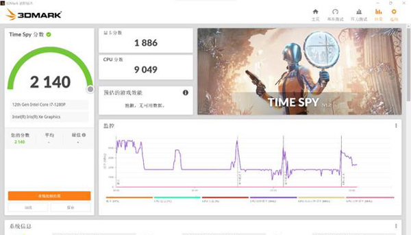 3DMark Timespy图形跑分达到了1886分,已经超越了28W“超大杯”功耗的MX450独立显卡。因此除了能够加速创作应用以外,也能满足一些大型游戏需求。