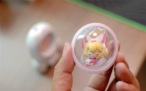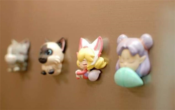 将面盖拆解后就可以取出时之彼端妲己了,时之彼端妲己的背面配有磁铁,可吸附在各种铁制品上,吸附在冰箱之上秒变冰箱贴,给原本单调的冰箱增色不少。