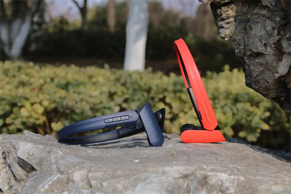 木六空气传导耳机提供了两种颜色可供消费者选择,一种是深蓝色,一种是红色。