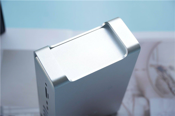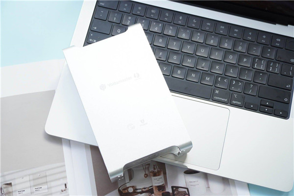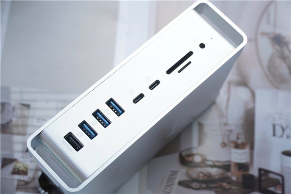 yottamaster雷电3扩展坞采用的是一个银色磨砂的外观设计,目前市面上其他扩展坞大多数都是灰色等比较深一点的颜色,因此这款扩展坞在颜色设计上很独特。