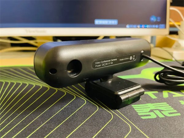 在外观设计上,这款摄像头还是比较简约的,正面从左往右分别设计的是麦克风、摄像头、以及扬声器。在摄像头的底部还设计了隐私盖滚轮,底座是固定支架,可以手动调整支板位置,让其固定。另外底部支板还设计了螺丝孔,可以搭配三角支架使用,非常的方便。摄像头背面设计了音频增强孔,以及USB接口。