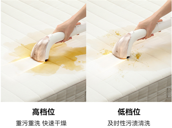 清洗时透明视窗可以清楚地看到清洗状态,对于陈年污渍或深层的污渍、螨虫、灰尘,强劲的吸力完全可以分分钟搞定,用干净水洗,再吸出污水,避免二次污染,看织物的水渍一吸就干了不留水痕,不用担心会伤害织物,或是沙发深层因为水渍未干而出现发霉等现象。